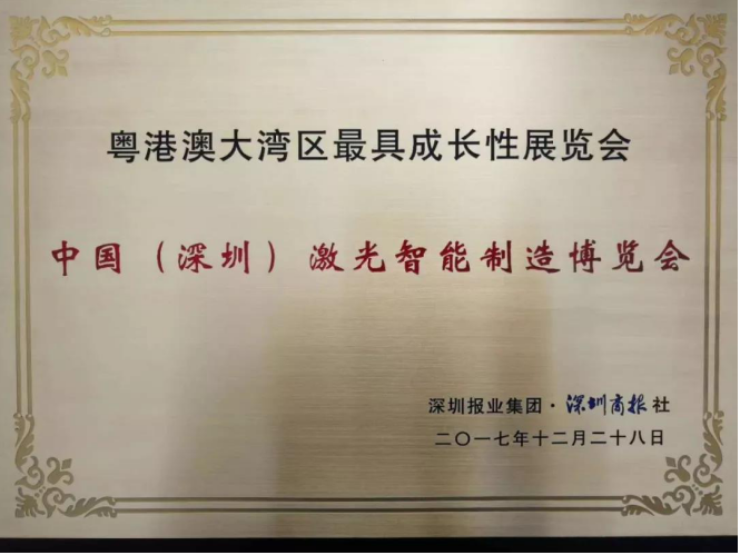 2018年1月18日,首届粤港澳大湾区会展业全球竞争力深圳实力榜在深圳宝安体育中心举行隆重揭榜仪式,中国激博会在品牌展会荣获“最具成长性” 展览会。LASERFAIR(中国激博会与智能制造博览会)是专注于激光加工、 激光应用和生产智能化产业的展览会, 主要宗旨是为国内,特别是华南地区激光设备与器件制造商以及终端用户搭建一个良好的交流交易平台, 致力于给众多激光上中下游企业帯来广阔的商机, 并推动华